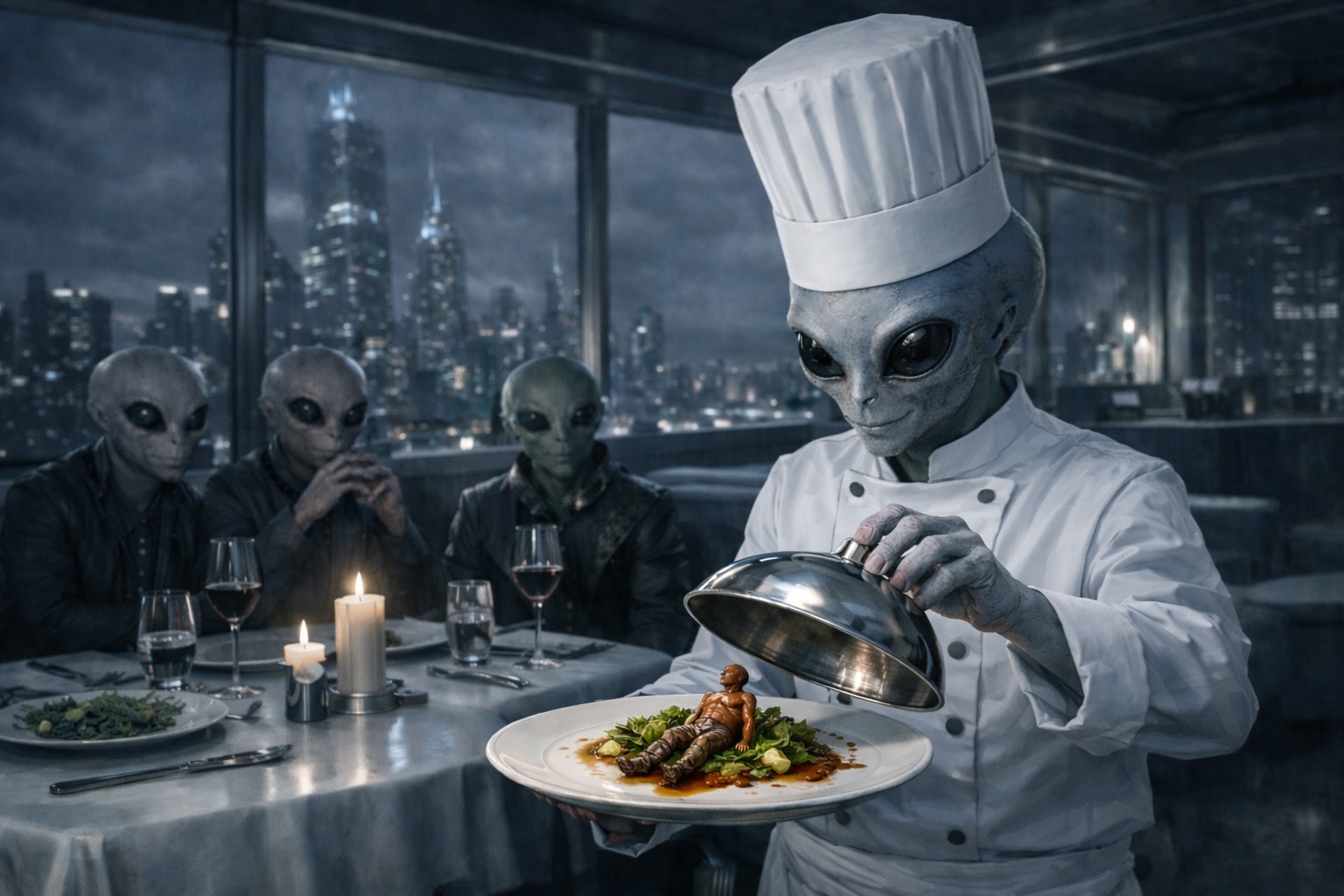 Autre exemple : accorderions-nous le droit de manger nos bébés à des extra-terrestres beaucoup plus intelligents et évolués que nous ? L’idée paraît cruelle et injustifiable ; et pourtant c’est bien au nom de notre supériorité (cognitive, politique, culturelle…) que nous tuons des agneaux de lait. Pourquoi le raisonnement s’arrêterait-il à notre espèce ?